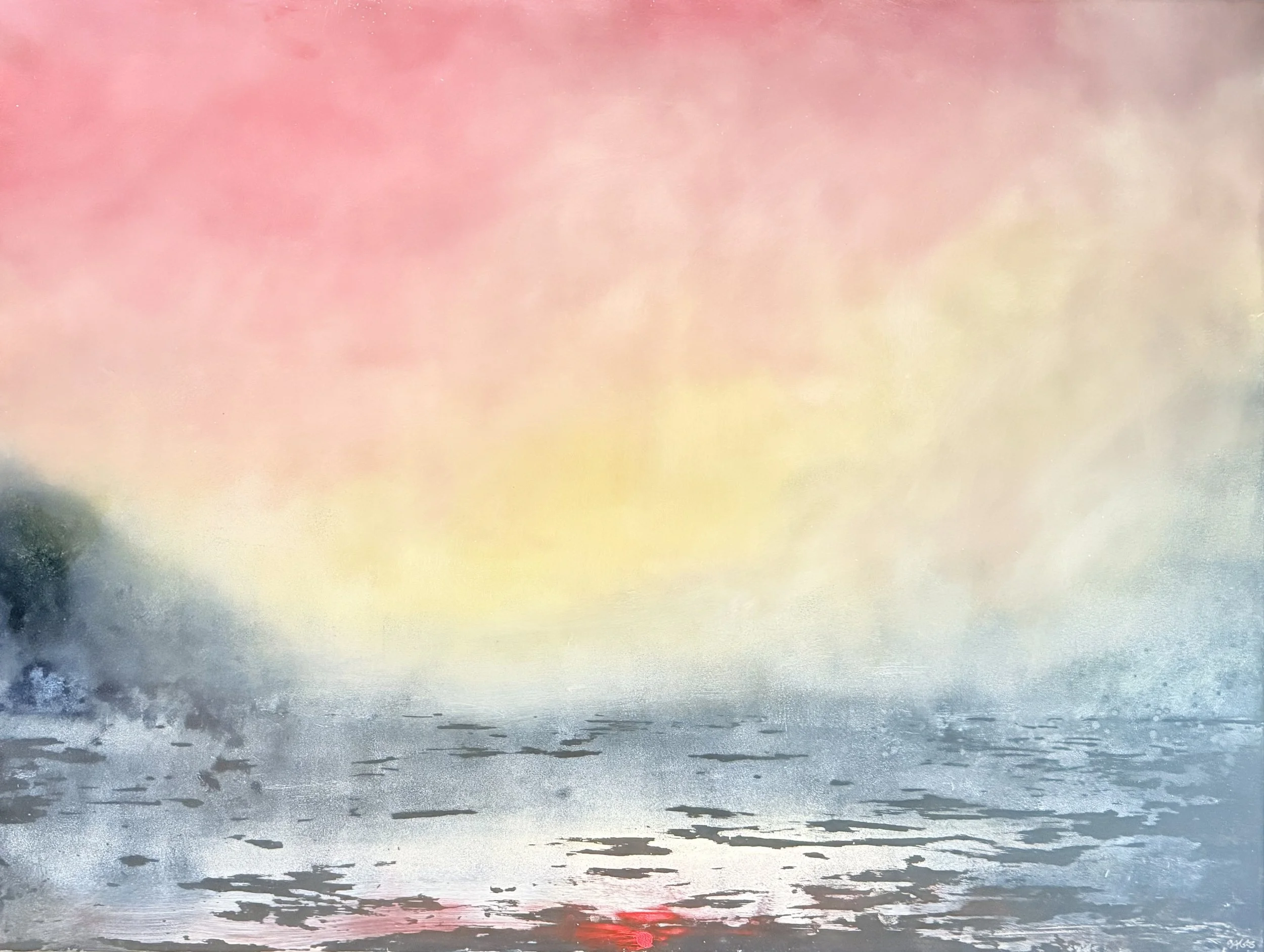 The series explores the quiet, powerful moments when light asserts itself against the weight of darkness. Each painting captures the brink of transformation - the suspended instant when a horizon shifts, when colour bleeds forward, and when something long-obscured finally emerges.