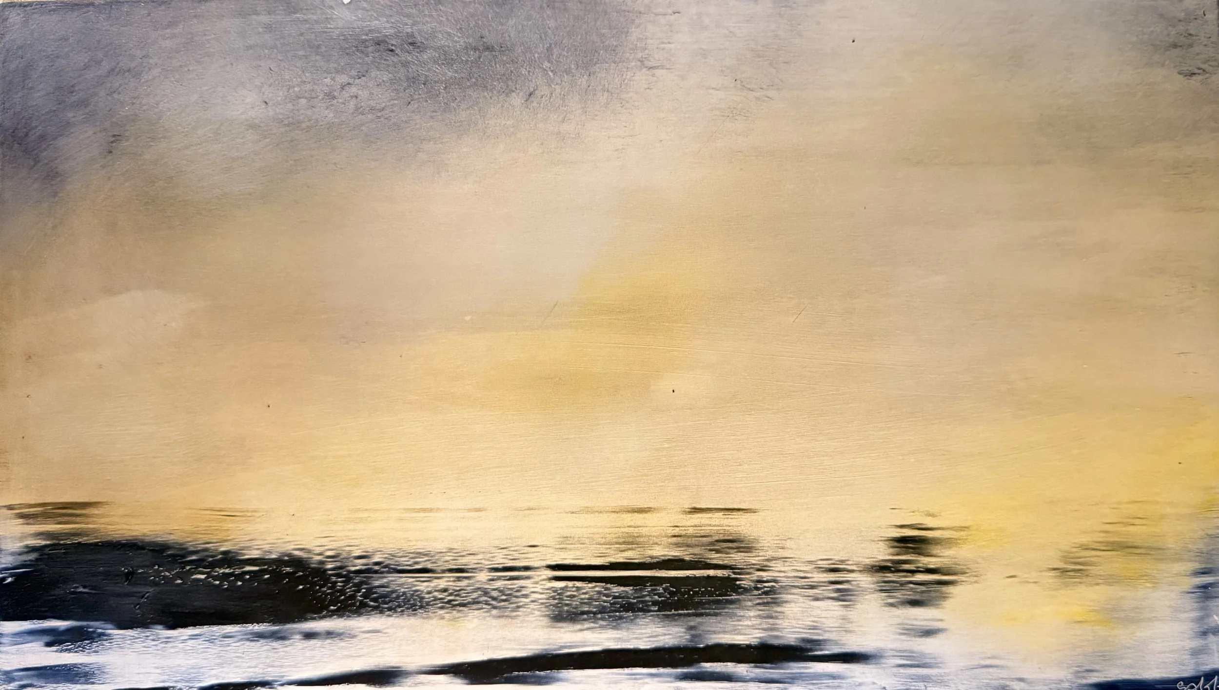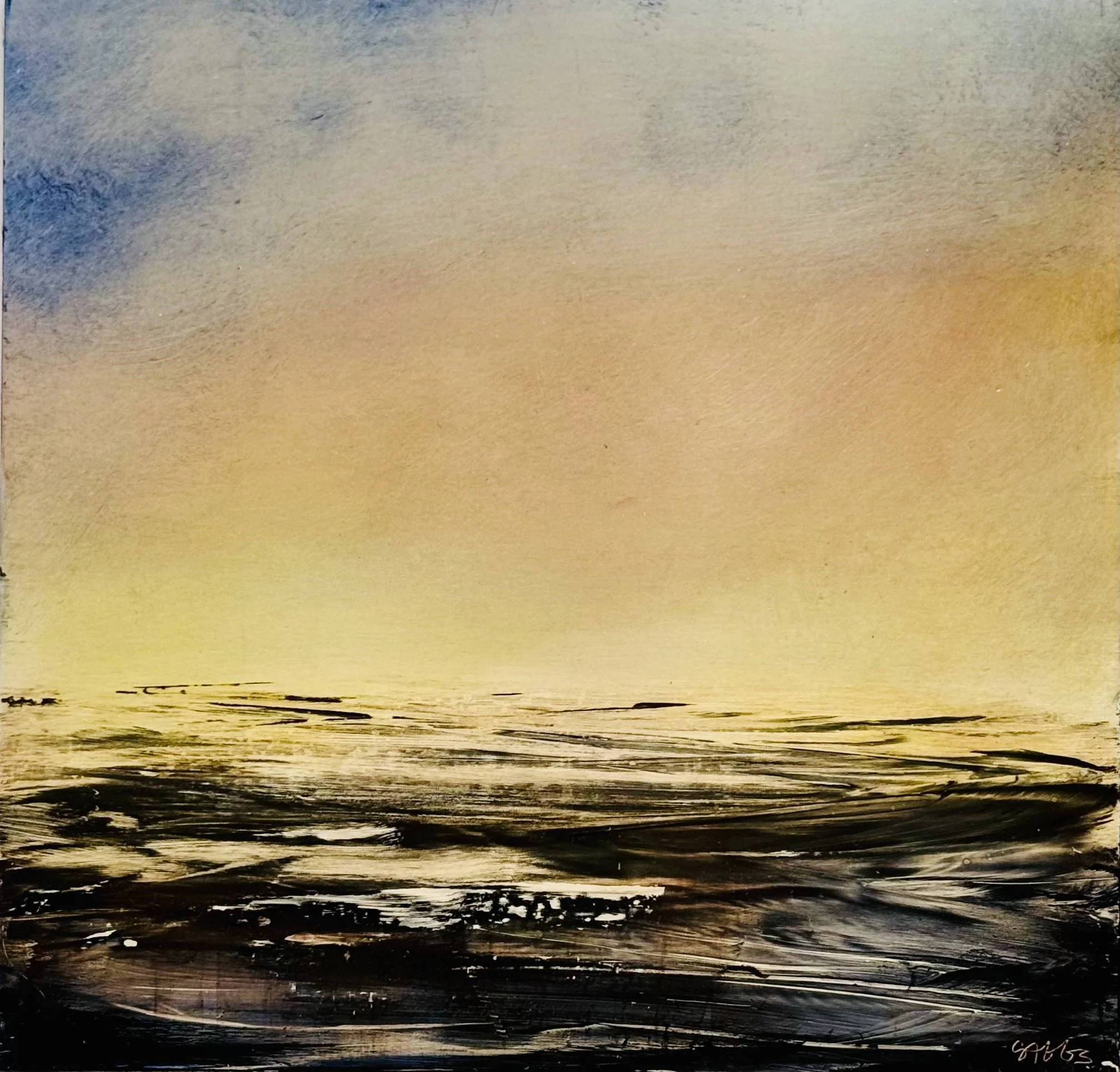 These oil paintings on metal are a progression from my Light on the Horizon series, moving now into colour and a more optimistic, expansive energy… like a breath finally released.